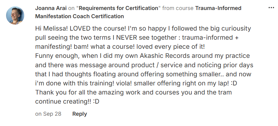 The Trauma-Informed Manifestation Coaching Certification training offers the latest techniques, knowledge and training in the coaching and LOA industry.